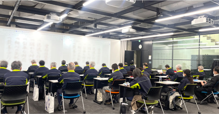 安全教育をメインに、清掃・設備に関しても、より高度な知識とスキルを習得。あわせて、お客さまのご要望を正しく把握するために、CS(顧客満足)向上や接遇マナーにも力を入れています。